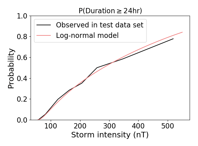 Based on aaH values in the 24-hour training window, the SVM predicts whether the next 3 hours will be either a storm or not. By comparing this dichotomous hindcast with the observed aaH, the outcome will be one of True Positive (TP, where a storm is correctly predicted), True Negative (TN, where no storm is correctly predicted), False Positive (FP, where a storm is predicted but not observed), or False Negative (FN, where a storm is not predicted but is observed). This is shown in the form of a contingency table in Figure 2.
