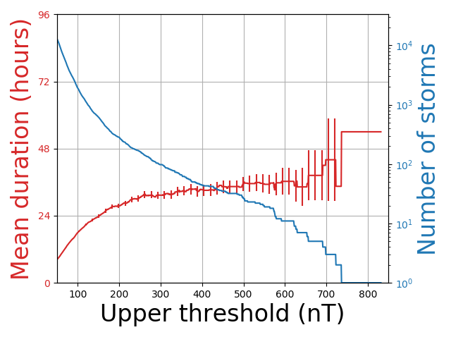 As in the previous post, the measure of geomagnetic activity used is the aaH index which has been developed by Mike Lockwood in Reading. The aaH index gives a global measure of geomagnetic activity at a 3-hour resolution. In this index, the minimum value is zero and larger values represent more intense geomagnetic activity.