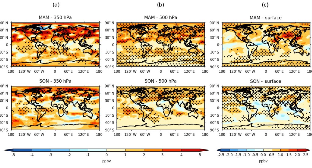 If we’ve found that the coarse particles are settling out the atmosphere too quickly (by potentially more than 80%), would that suggest that the deposition equations are wrong and are overestimating particle deposition? So, we change those and everything’s fixed, right? I wish. Unfortunately, the deposition equations are one of the things that we are more scientifically sure of, so our results mean that there’s something happening to the coarse particles that we aren’t modelling which is able to counteract their settling velocity by a very significant amount. Our finding that the vertical winds are too small could be a part of this. Other recent research suggests that processes such as particle asphericity, triboelectrification, vertical mixing and turbulent mixing (has been shown to help in a higher-resolution (not climate) model) in the atmosphere could enhance coarse particle transport.