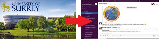 Figure 1 – It was initially planned to hold the conference at the University of Surrey campus, which is located in Guildford, Surrey and hosts some students from the SCENARIO NERC DTP. The conference was instead held on Slack, an online communication platform that allows content to be divided into channels, and presentation sessions were hosted on Zoom.