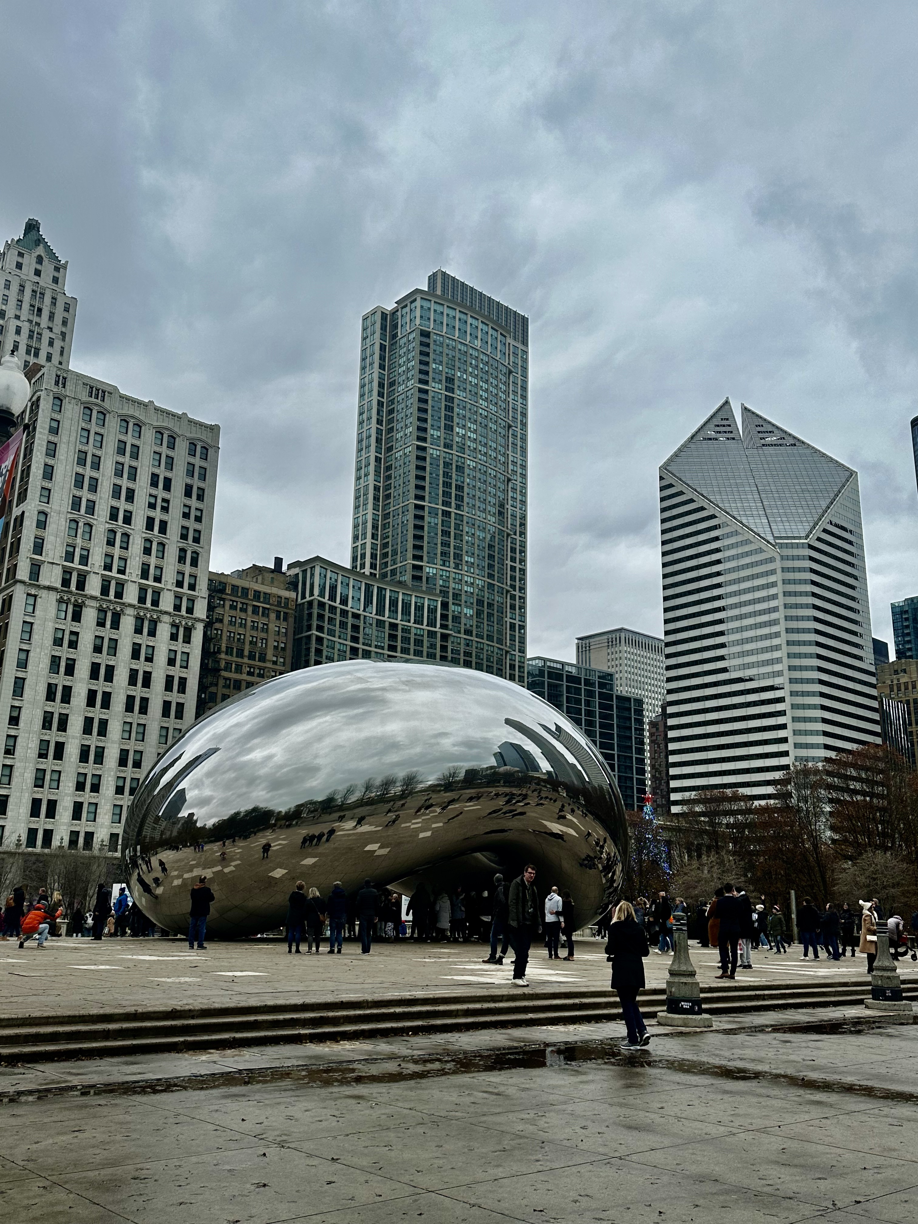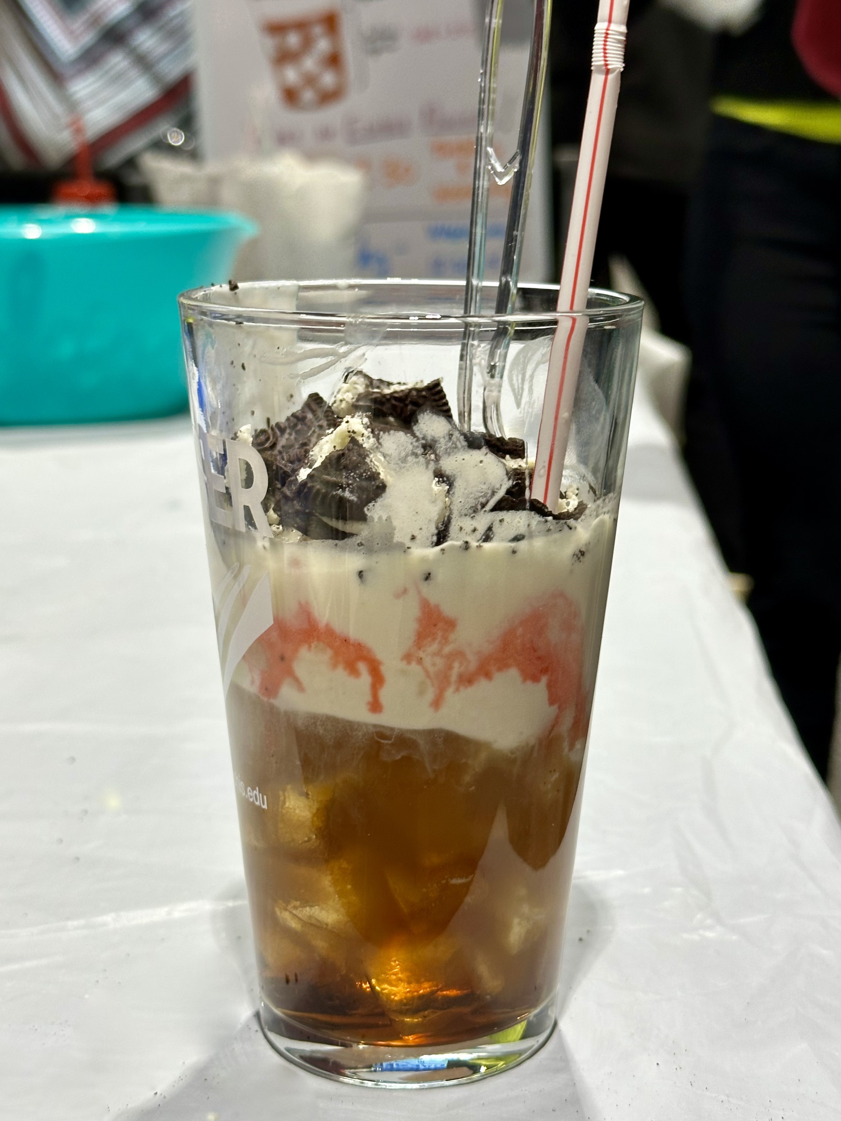 Figure 3: A few memories from my visit to Chicago, including the Oreo ice cream float, the cloud gate (a.k.a., The Bean), and the NHL Ice Hockey game at the Union Center.