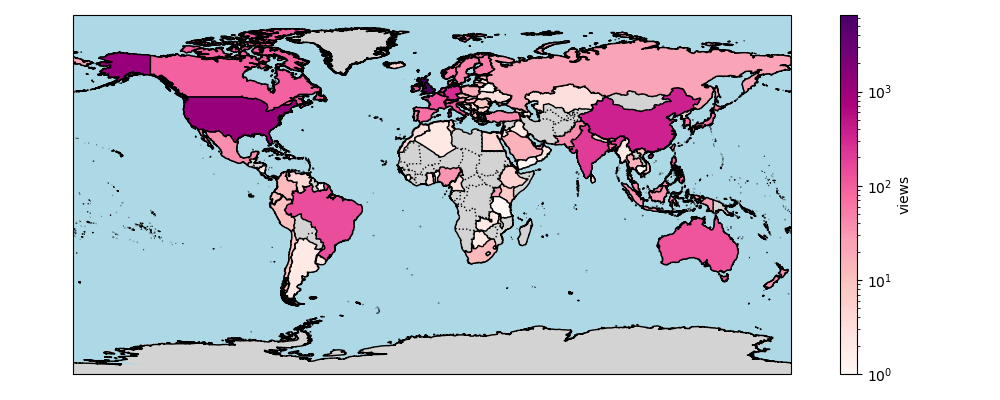 Compared to 2020 we have seen Brazil and Australia enter the top 10 highest number of readers at 144 and 118 views respectively. And leading with the top 3 number of views are United Kingdom (6495), United States (1134) and China (361).