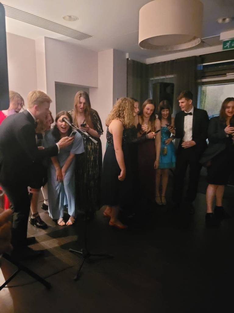 As many of the other parts had relatively few lines, it was great to have so many students wanting to get involved. This led to a great atmosphere both on and off stage – we’re hoping this enthusiasm is still there when we start looking for next year’s organisers…